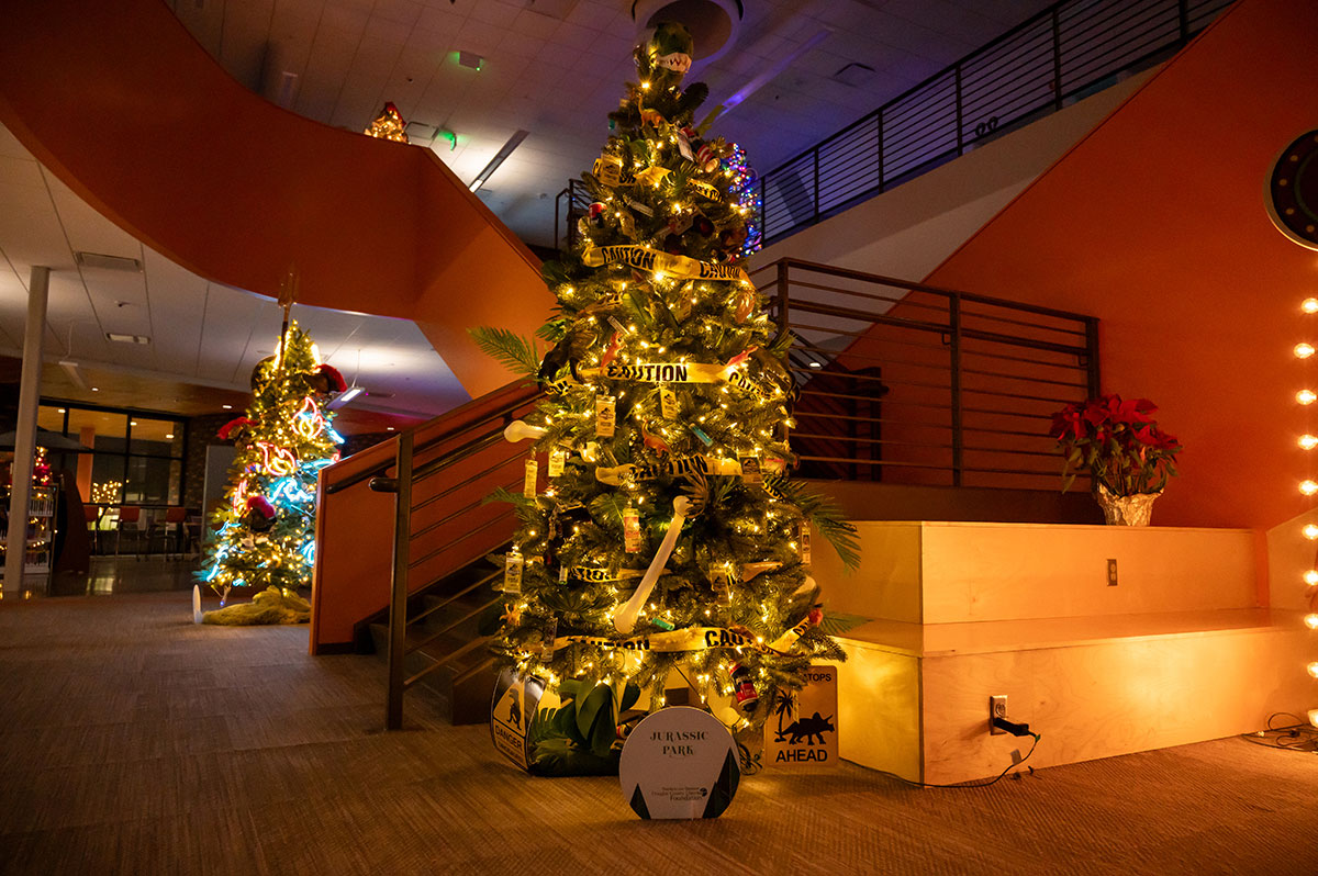 This year introduces an exciting new Tree of the Week contest, highlighting a different featured tree at a different library branch each week. Visitors are encouraged to locate the featured tree of the week, find and scan the ornament QR code, and enter to win a prize. New winners and new prizes are awarded each week throughout the exhibit.